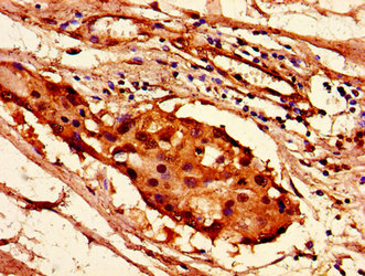 Immunohistochemistry of paraffin-embedded human glioma using CSB-PA010389PA36nacHU at dilution of 1:100