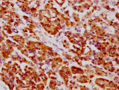 IHC image of CSB-PA010389PA09nacHU diluted at 1:10 and staining in paraffin-embedded human pancreatic tissue performed on a Leica BondTM system. After dewaxing and hydration, antigen retrieval was mediated by high pressure in a citrate buffer (pH 6.0). Section was blocked with 10% normal goat serum 30min at RT. Then primary antibody (1% BSA) was incubated at 4°C overnight. The primary is detected by a biotinylated secondary antibody and visualized using an HRP conjugated SP system.