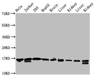 Positive WB detected in: Hela whole cell lysate, Jurkat whole cell lysate, 293 whole cell lysate, HepG2 whole cell lysate, Rat brain tissue, Rat liver tissue, Rat kidney tissue, Mouse liver tissue, Mouse kidney tissue