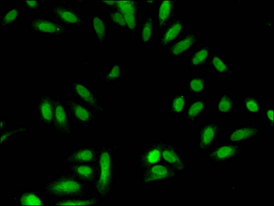 Immunofluorescent analysis of Hela cells using CSB-PA010418PA18nacHU at dilution of 1:100 and Alexa Fluor 488-congugated AffiniPure Goat Anti-Rabbit IgG(H+L)