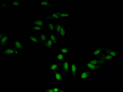 • Immunofluorescent analysis of Hela cells using CSB-PA010418PA27nme2HU at dilution of 1:100 and Alexa Fluor 488-congugated AffiniPure Goat Anti-Rabbit IgG(H+L)