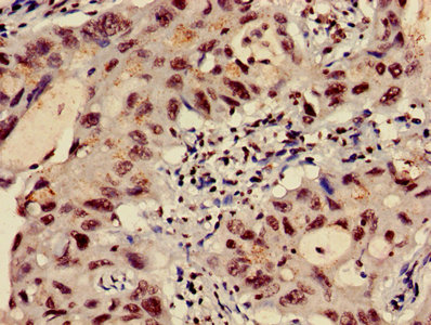 Immunohistochemistry of paraffin-embedded human lung cancer using CSB-PA010418OA09nacHU at dilution of 1:100