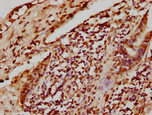 • IHC image of CSB-PA010429PA05nhibHU diluted at 1:8 and staining in paraffin-embedded human liver cancer performed on a Leica BondTM system. After dewaxing and hydration, antigen retrieval was mediated by high pressure in a citrate buffer (pH 6.0). Section was blocked with 10% normal goat serum 30min at RT. Then primary antibody (1% BSA) was incubated at 4°C overnight. The primary is detected by a biotinylated secondary antibody and visualized using an HRP conjugated SP system.