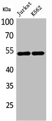 • Western Blot analysis of Jurkat K562 cells using HNF-4α/γ Polyclonal Antibody