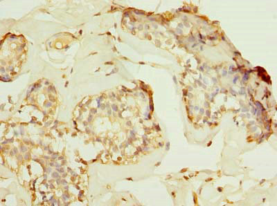 Immunohistochemistry of paraffin-embedded human breast cancer using CSB-PA02269A0Rb at dilution of 1:100