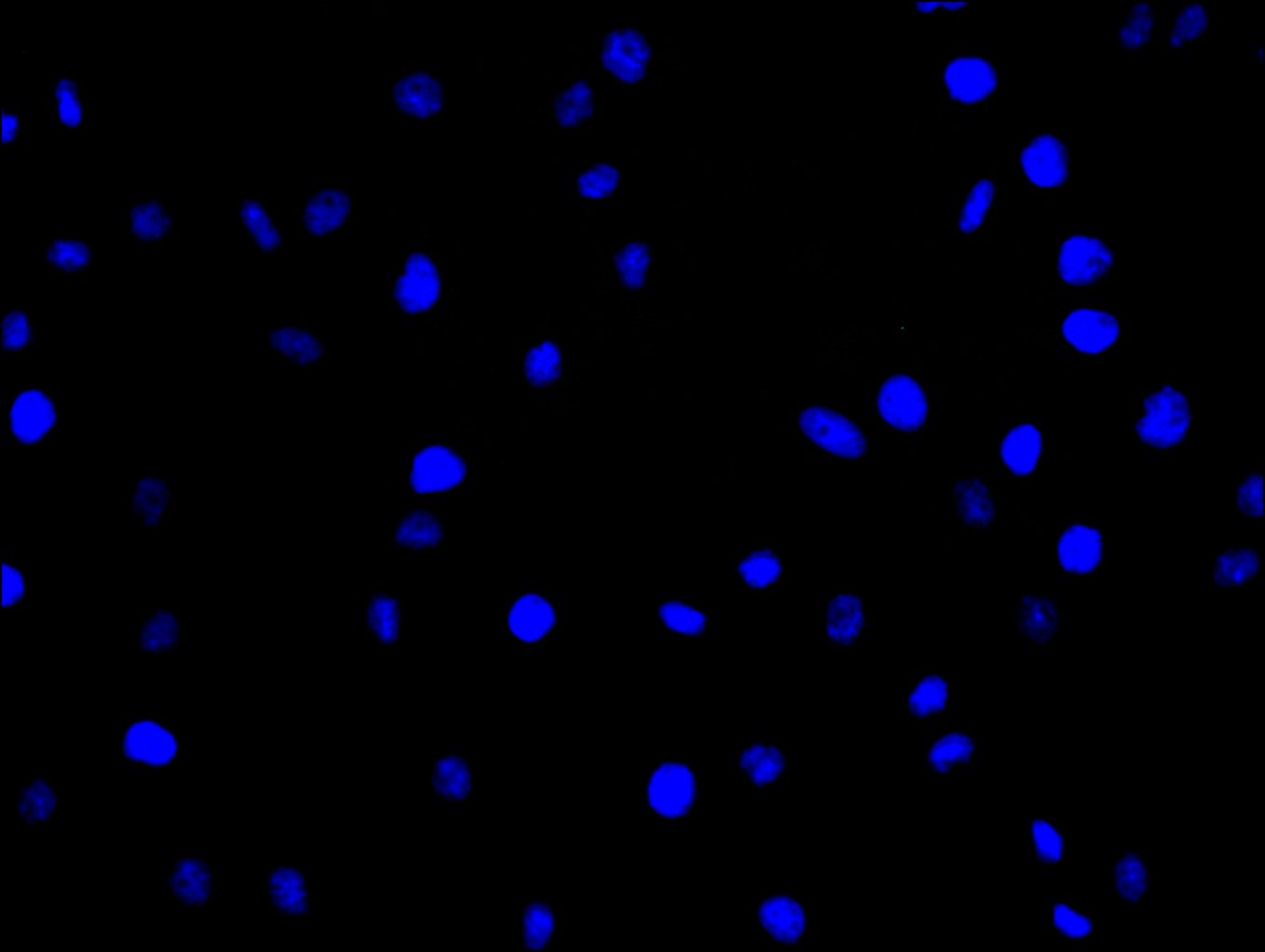 Immunofluorescence staining of MCF-7 cell with 5% goat serum, counter-stained with DAPI. The cells were fixed in 4% formaldehyde and blocked in 10% normal Goat Serum. The cells were then incubated with the antibody overnight at 4C. The secondary antibody was Alexa Fluor 488-congugated AffiniPure Goat Anti-Rabbit IgG(H+L).