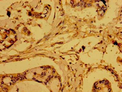 • IHC image of CSB-PA010902EA01HU diluted at 1:200 and staining in paraffin-embedded human colon cancer performed on a Leica BondTM system. After dewaxing and hydration, antigen retrieval was mediated by high pressure in a citrate buffer (pH 6.0). Section was blocked with 10% normal goat serum 30min at RT. Then primary antibody (1% BSA) was incubated at 4°C overnight. The primary is detected by a biotinylated secondary antibody and visualized using an HRP conjugated SP system.