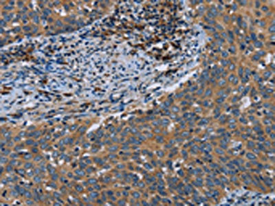 The image on the left is immunohistochemistry of paraffin-embedded Human cervical cancer tissue using CSB-PA928714(HYAL3 Antibody) at dilution 1/40, on the right is treated with fusion protein. (Original magnification: ×200)