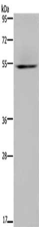 Gel: 8%SDS-PAGE, Lysate: 40 μg, Lane: Human kidney tissue, Primary antibody: CSB-PA928714(HYAL3 Antibody) at dilution 1/400, Secondary antibody: Goat anti rabbit IgG at 1/8000 dilution, Exposure time: 3 minutes