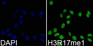 免疫原:A synthetic mono-methylatedpeptide corresponding to residues surrounding Arg17 of Human histone H3