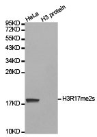免疫原:A synthetic methylated peptide corresponding to residues surrounding Arg17 of Human histone H3