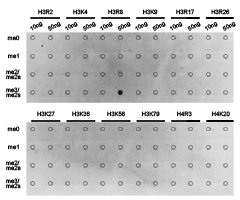 免疫原:A synthetic methylated peptide corresponding to residues surrounding R8of Human histone H3