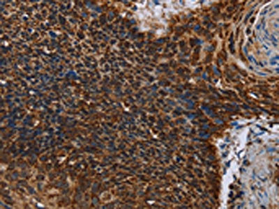 The image on the left is immunohistochemistry of paraffin-embedded Human cervical cancer tissue using CSB-PA586287(IDH2 Antibody) at dilution 1/60. (Original magnification: ×200)