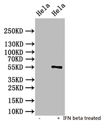 Positive WB detected in: untreated Hela whole cell lysate, IFN beta treated Hela whole cell lysate