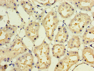 • Immunohistochemistry of paraffin-embedded human kidney tissue using CSB-PA011033LA01HU at dilution of 1:100