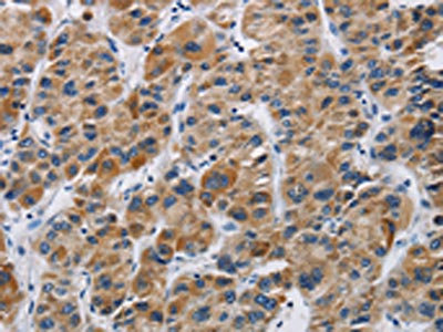 • The image on the left is immunohistochemistry of paraffin-embedded Human liver cancer tissue using CSB-PA149561(IFNGR2 Antibody) at dilution 1/40, on the right is treated with synthetic peptide. (Original magnification: ×200)