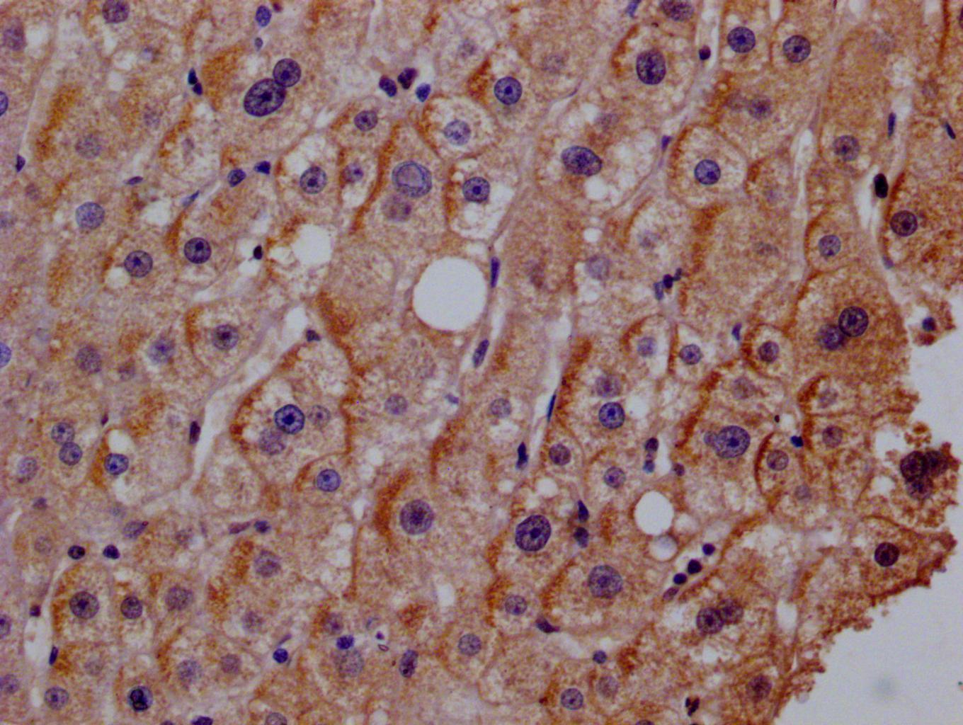 • IHC image of CSB-PA816871ESR1HU diluted at 1:200 and staining in paraffin-embedded human liver cancer performed on a Leica BondTM system. After dewaxing and hydration, antigen retrieval was mediated by high pressure in a citrate buffer (pH 6.0). Section was blocked with 10% normal goat serum 30min at RT. Then primary antibody (1% BSA) was incubated at 4°C overnight. The primary is detected by a Goat anti-rabbit polymer IgG labeled by HRP and visualized using 0.05% DAB.