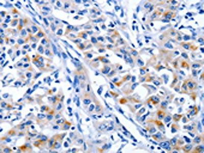 • The image on the left is immunohistochemistry of paraffin-embedded Human lung cancer tissue using CSB-PA918972(IGF2BP1 Antibody) at dilution 1/25, on the right is treated with synthetic peptide. (Original magnification: ×200)