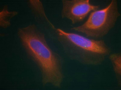 • Immunofluorescence staining of methanol-fixed Hela cells using IKK-b(Ab-199) Antibody.