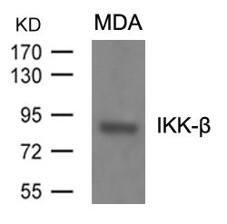 • Western blot analysis of extracts from MDA cells using IKK-b(Ab-199) Antibody.