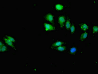 Immunofluorescent analysis of A549 cells using CSB-PA16309A0Rb at dilution of 1:100 and Alexa Fluor 488-congugated AffiniPure Goat Anti-Rabbit IgG(H+L)
