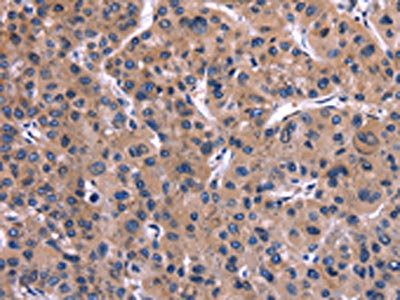 • The image on the left is immunohistochemistry of paraffin-embedded Human liver cancer tissue using CSB-PA107052(IL1A Antibody) at dilution 1/40, on the right is treated with fusion protein. (Original magnification: ×200)