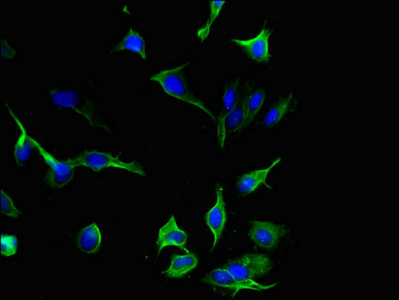 • Immunofluorescent analysis of Hela cells using CSB-PA011656LA01HU at dilution of 1:100 and Alexa Fluor 488-congugated AffiniPure Goat Anti-Rabbit IgG(H+L)