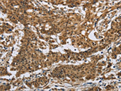 • The image on the left is immunohistochemistry of paraffin-embedded Human gastric cancer tissue using CSB-PA935849(IL5RA Antibody) at dilution 1/40, on the right is treated with synthetic peptide. (Original magnification: ×200)