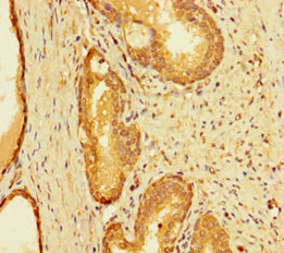 • Immunohistochemistry of paraffin-embedded human prostate cancer using CSB-PA011767LA01HU at dilution of 1:100