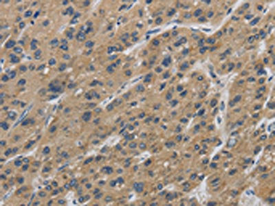 The image on the left is immunohistochemistry of paraffin-embedded Human liver cancer tissue using CSB-PA982871(IPO7 Antibody) at dilution 1/40, on the right is treated with synthetic peptide. (Original magnification: ×200)