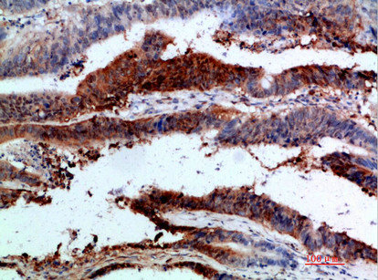 Immunohistochemical analysis of paraffin-embedded human-colon-cancer, antibody was diluted at 1:200