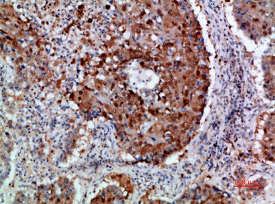 Immunohistochemical analysis of paraffin-embedded human-lung-cancer, antibody was diluted at 1:200