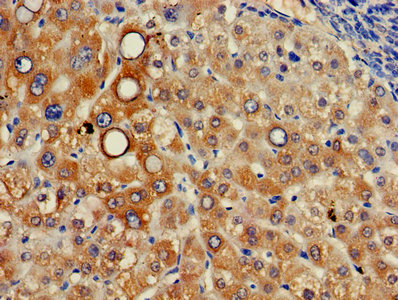 Immunohistochemistry of paraffin-embedded human liver tissue using CSB-PA011903LA01HU at dilution of 1:100