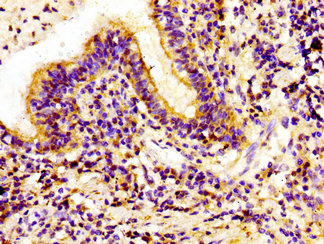 Immunohistochemistry of paraffin-embedded human lung cancer using CSB-PA011922LA01HU at dilution of 1:100