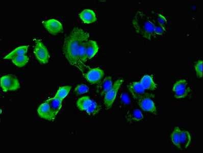 • Immunofluorescent analysis of MCF-7 cells using CSB-PA010989LA01MO at dilution of 1:100 and Alexa Fluor 488-congugated AffiniPure Goat Anti-Rabbit IgG(H+L)