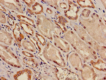 Immunohistochemistry of paraffin-embedded human kidney tissue using CSB-PA012062LA01HU at dilution of 1:100