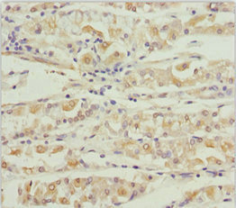Immunohistochemistry of paraffin-embedded human gastric cancer using CSB-PA859028ESR1HU at dilution of 1:100