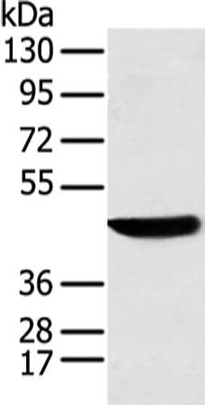 Gel: 8%SDS-PAGE, Lysate: 40 μg, Lane: K562 cell, Primary antibody: CSB-PA243997(KRT18 Antibody) at dilution 1/200 dilution, Secondary antibody: Goat anti rabbit IgG at 1/8000 dilution, Exposure time: 5 seconds