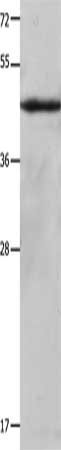 • Gel: 10%SDS-PAGE, Lysate: 30 μg, Lane: Hela cells, Primary antibody: CSB-PA041845(KRT23 Antibody) at dilution 1/300, Secondary antibody: Goat anti rabbit IgG at 1/8000 dilution, Exposure time: 20 seconds