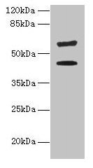 Predicted band size: 59, 42 kDa