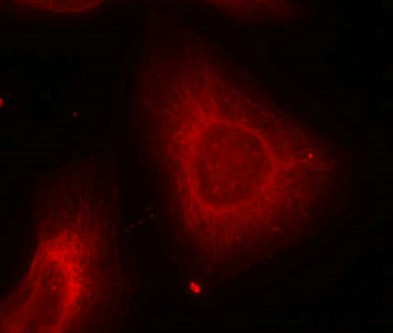 Immunofluorescence staining of methanol-fixed Hela cells using Keratin 8(Ab-74) Antibody.