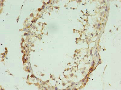 Immunohistochemistry of paraffin-embedded human testis tissue using CSB-PA864008LA01HU at dilution of 1:100