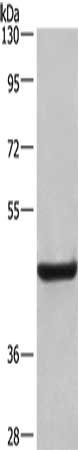 • Gel: 10%SDS-PAGE, Lysate: 40 μg, Lane: Human placenta tissue, Primary antibody: CSB-PA938525(LAMP2 Antibody) at dilution 1/500, Secondary antibody: Goat anti rabbit IgG at 1/8000 dilution, Exposure time: 30 seconds