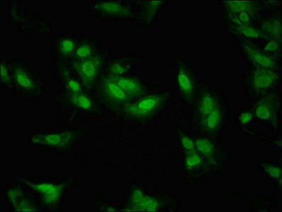 Immunofluorescent analysis of Hela cells using CSB-PA771433LA01HU at dilution of 1:100 and Alexa Fluor 488-congugated AffiniPure Goat Anti-Rabbit IgG(H+L)