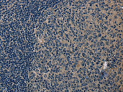 The image on the left is immunohistochemistry of paraffin-embedded Human tonsil tissue using CSB-PA790514(LGR4 Antibody) at dilution 1/20, on the right is treated with synthetic peptide. (Original magnification: ×200)