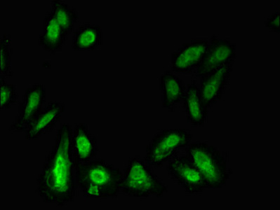 • Immunofluorescent analysis of Hela cells using CSB-PA012975LA01HU at dilution of 1:100 and Alexa Fluor 488-congugated AffiniPure Goat Anti-Rabbit IgG(H+L)