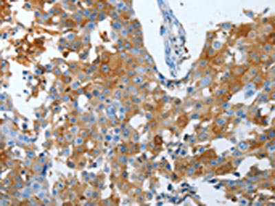 • The image on the left is immunohistochemistry of paraffin-embedded Human breast cancer tissue using CSB-PA808676(LOX Antibody) at dilution 1/25, on the right is treated with synthetic peptide. (Original magnification: ×200)
