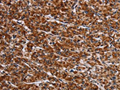 The image on the left is immunohistochemistry of paraffin-embedded Human prostate cancer tissue using CSB-PA206609(LRRC15 Antibody) at dilution 1/60, on the right is treated with fusion protein. (Original magnification: ×200)