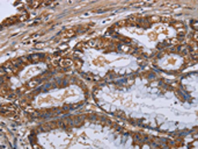 • The image on the left is immunohistochemistry of paraffin-embedded Human esophagus cancer tissue using CSB-PA788951(LUM Antibody) at dilution 1/20, on the right is treated with fusion protein. (Original magnification: ×200)