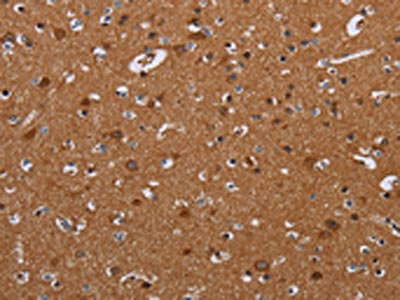 • The image on the left is immunohistochemistry of paraffin-embedded Human brain tissue using CSB-PA788951(LUM Antibody) at dilution 1/20, on the right is treated with fusion protein. (Original magnification: ×200)